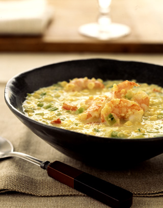 Shrimp, Corn, and Quinoa Soup: Instead of water, use 4 cups of fish or clam broth. Use oregano instead of the thyme. Once quinoa is tender, add 1/2 pound peeled, small shrimp. Cook until the shrimp turn pink, about 1 minute. Omit the milk.